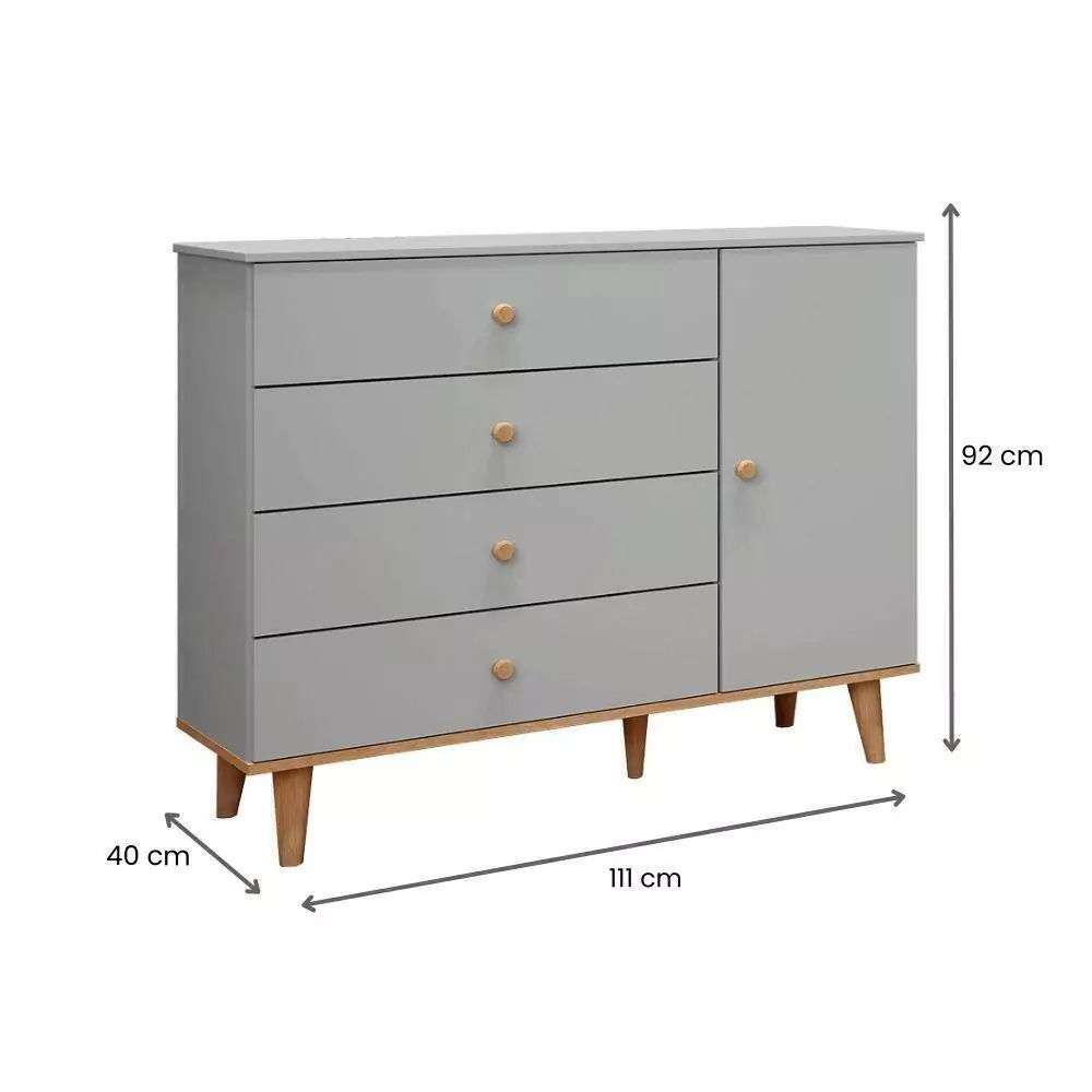 Transforme o quarto do seu bebê com a Cômoda Infantil Retrô 4 Gavetas Mylla Cinza Carolina Baby e ofereça o melhor em organização, segurança e estilo!
